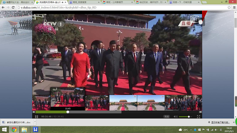 在一系列活动之后,2015年9月3日,同学们迎来了中国为纪念世界反法西斯战争胜利70周年举行的阅兵仪式。在阅兵式期间,同学们通过电视、网络自发观看了这一次的大阅兵。