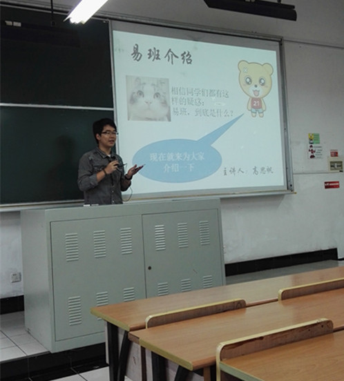 首先,团支书高思帆同学向大家介绍了易班网的由来及主旨。易班是提供教育教学、生活服务、文化娱乐的综合性互动社区。网站融合了论坛、社交、博客、微博等主流的Web2.0应用,加入了为在校师生定制的教育信息化一站式服务功能,并支持WEB、手机客户端等多种访问形式。易班在高校中设立了学生工作站,开展了丰富多彩的校园文化活动,已经成为全国教育系统的知名文化品牌。并且,我校成为了易班的第一批适用对象之一。