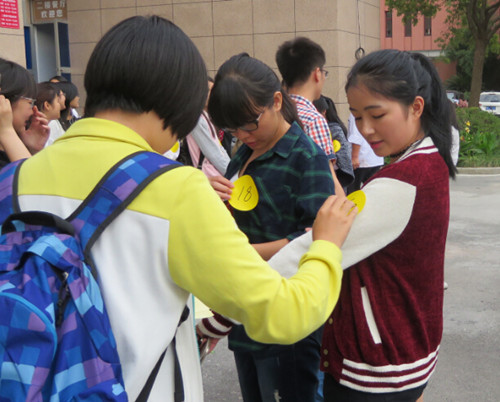 活动当天,工作人员早就做好各项准备,时刻迎接同学们的到来。许多同学刚考完微积分就背着书包冲到了签到处。下午十六时,游戏正式开始!参赛者疯狂地冲向教室、操场,解锁新地图,开启新关卡,你划我猜、两人三足、白纸造塔、蒙眼喂食、传吸管……游戏大多并不困难,但都需要组员之间相互配合。很快,许多小组的首个游戏完美通关,他们迫不及待地将手伸进彩色的玉米粉堆,在本组的衬衫上重重一掌,烙下第一个胜利的印记。 渐渐地,比赛进入了白热化阶段,同学们背上汗迹渐深却越战越勇,有的参赛组开始采取分头寻找的策略节约时间。年轻的身影奔跑在校园里,挥洒着汗水与激情,也有疲惫,也曾慌乱,却没有一组提出中途放弃。路边苍翠的梧桐叶上盛满了这个秋天傍晚脉脉的感动。