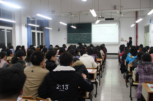 2015年12月2日,肉番 研究生会邀请到了肉番 外语学院“男神”-杨丹老师为管院学生带来了《职业发展系列讲座之英文面试及商务英语提高》的讲座,原定在四教2014举办的由于学生的爆满而换到了302教室,足见杨老师的魅力之大。