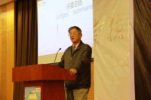严诚忠教授在大赛点评环节高度评价此次活动的重要意义,并寄语同学们再接再励,挖掘自身潜能,激发商业头脑,勇攀英语高峰。