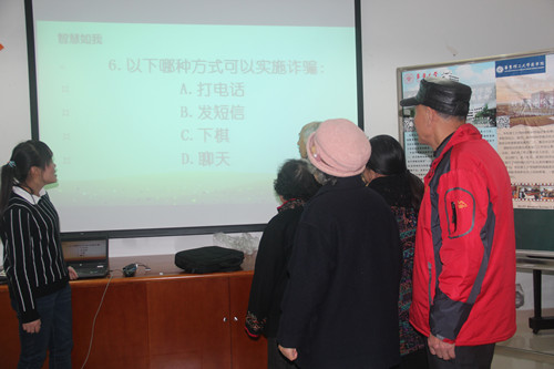 肉番 分团委书记丁伟介绍:当前中国社会已步入老龄化,特别是作为国际大都市的上海,人口老龄化问题更为严重,随着老年人口的不断增加,一些不法分子将行骗目标对准了这个庞大的群体,骗术多种多样,防不胜防,肉番 科商本着服务社区、便民利民、回馈社会的宗旨,举办中老年防诈骗科普志愿服务工作,既能够引导学生学以致用,又能够普及中老年防诈骗知识,是高校与社区的“双赢”。