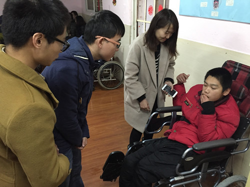 在本次悦苗残疾人寄养园志愿者活动中,所有党员分两批进行活动,12月6日一批,12月20一批。在院研究生会负责人的带领下,管理151硕党支部的同学积极主动的参加了本次志愿者活动。据悦苗残疾人寄养园的负责人介绍,悦苗残疾人寄养园是一所为智障青少年提供养护和疗育的民办非盈利性社会福利机构。办园的目的是关爱智障青少年的成长,探索该领域的管理、康复、教育、养护等经验,以及政府、家庭、社会的责任和协作关系,解除家长的后顾之忧,推进残疾人社会保障事业的发展。目前寄养在悦苗的大部分都是有智力障碍或者有精神疾病的孩子,也有一部分是有智力障碍的成年人,他们的心理平均年龄只相当于5、6岁的儿童。他们当中有的是被父母寄养在这里,有的更是因为先天疾病被父母抛弃,有的成年人是家人无法照顾寄养在这边。
