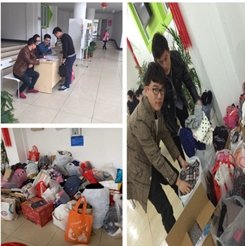 自3月18日起,捐赠活动得到了广大老师和同学们的积极响应。负责沟通联系的同学第一天就收到了许多捐赠短信的“轰炸”,即将毕业的2016届学姐学长们纷纷询问旧衣的捐赠方式,将自己的闲置衣物、书籍等物品进行捐赠,奉献爱心。有些学长学姐因为工作原因不能亲自将衣物送到收纳处,会向15级党员同学预约时间,由15级党员同学上门领取。