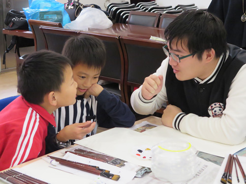 课程接近尾声,志愿者们与孜孜求学了两个小时的小朋友们一起合影,结束了今日的课程。离别时刻,小朋友们坐在爸爸妈妈的车后座上,纷纷举起小手挥舞着与志愿者告别。 辅导的过程中,相信小朋友们学到的不仅是书本内的知识,作业中的正确答案,更能从哥哥姐姐悉心的教导中,感受到那份温暖的关怀,在心中埋下爱和给予的种子,志愿的内涵得以在潜移默化中传承。 撰稿人:管院志管秘书部 褚翔泳 撰稿日期:2016年3月20日