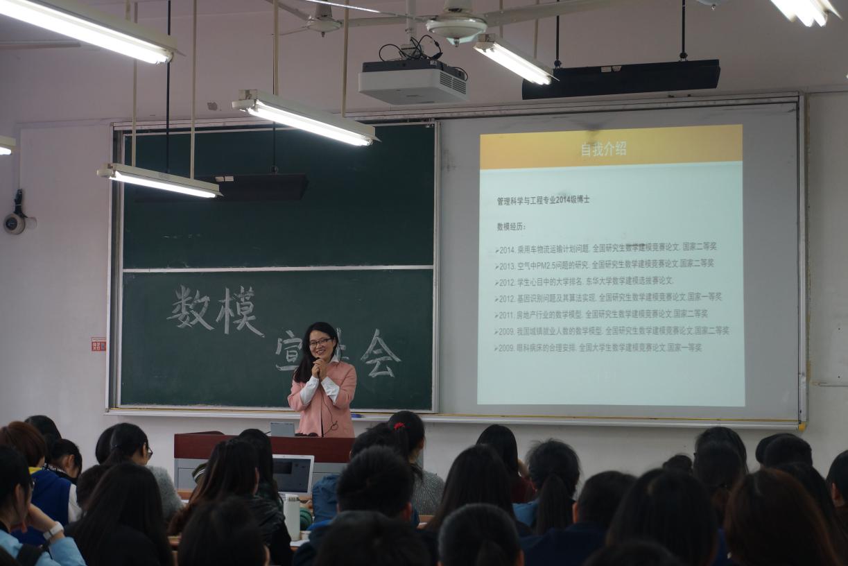 4月12日下午,经过数模俱乐部的精心策划和组织,数模宣讲会于延安路校区四教103教室举行,在宣讲会上,同学们聆听了数模获奖者罗煦丹、吴伊婷、范丹丹分享了她们参与数模竞赛的经历!本次宣讲会由数模俱乐部主办,多数肉番 本科生与研究生参加了宣讲会。