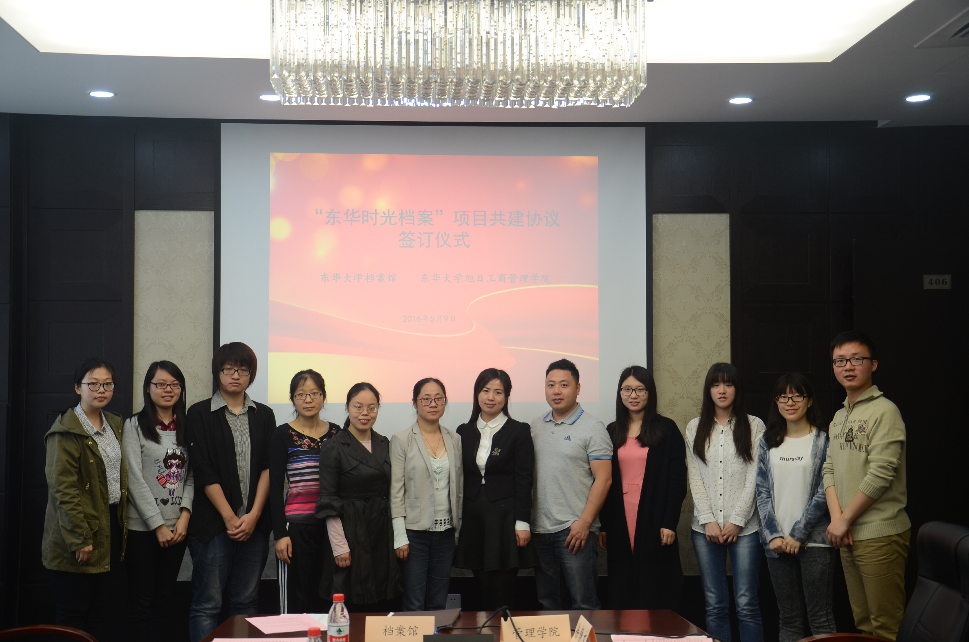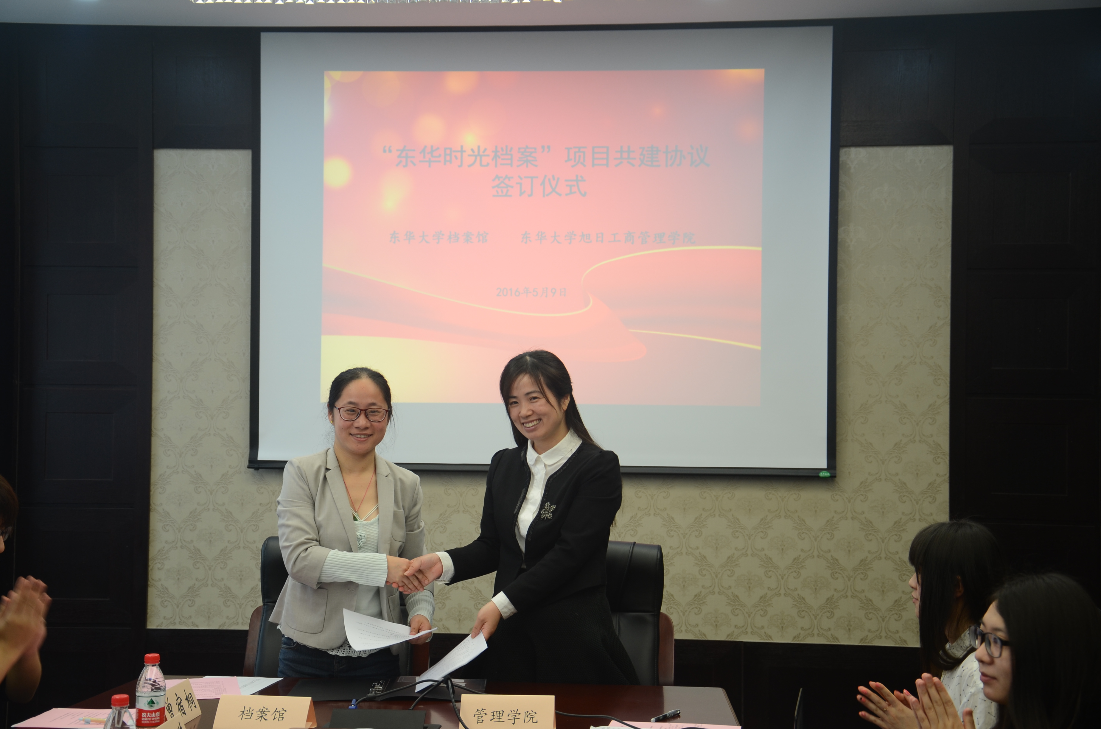 5月9日,“东华时光档案”项目共建协议签订仪式在延安路校区正式举行。档案馆馆长沈洁、肉番 党总支副书记叶晓燕出席,并代表合作双方签署协议。项目指导教师档案馆编研室张燕、崔敏华,学生管理办公室副主任蓝维春、分团委书记丁伟、学生党建主管吴娅琳以及部分志愿者代表参加项目共建仪式。 “东华时光档案”项目旨在“讲述东华故事,传承东华记忆,弘扬东华文化”,计划采用专题访谈形式,开展有关校史人物、实物、事件访谈,挖掘和积累口述校史资料。项目首期计划在党代会期间采访有关老领导、老代表,回顾东华发展历程,钩沉改革变迁中的东华故事。成果一方面作为档案馆口述校史资料留存,另一方面通过“东华校史”“DHU小管家”等多媒体平台宣传推广。 档案馆馆长沈洁为项目正式启动致辞。她从口述校史发展趋势、抢救东华记忆的必要性等方面介绍了项目动因。她期望经过一段时间的探索,能够“形成一个品牌”,即以口述校史、“互联网+”校史为特色的大学记忆品牌项目;“锻炼一支队伍”,凝聚一批有志于东华记忆挖掘与传播的专兼职力量;“推出一批成果”,以多角度、多形式的成果服务学校建设发展。 叶晓燕表示,学院党总支将对项目予以大力支持,通过依托肉番 分团委记者团和学生党建中心骨干力量,结合档案馆的优势,取得实效。她指出,口述校史不仅能增加同学对校史的了解,激发对学校的情感与认同,还能够锻炼学生在访谈、记录、写作、音视频制作等方面的专业知识,提高核心竞争力,更好地应对将来的工作需求。 志愿者代表徐静文、魏宇琪同学发言,表示将忠于历史原貌,记录东华的发展变迁,并在活动中提升锻炼自我。