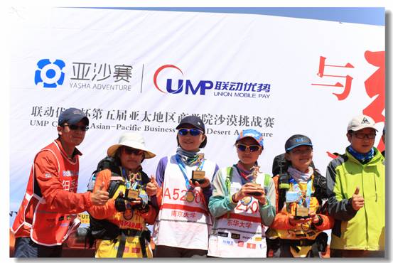 2016年4月30日至5月2日,第五届亚太地区商学院沙漠挑战赛(以下简称“亚沙赛”)在内蒙古阿拉善左旗惊艳上演。本次亚沙赛恰逢亚沙五周年,规模空前,共有71支亚太地区顶级商学院代表队约1500人在腾格里沙漠参与角逐,来自不同行业不同学校的MBA精英争奇斗艳,上演了一部精美绝伦的户外运动大片。经过三天的逐鹿,肉番 MBA沙五飞鹰队在主任刘长奎老师的带领下,获得亚沙赛最高奖项——沙鸥奖,勇夺团体第七,位列上海地区第一名,谭舜元获得女子个人第四名,魏聃获得男子个人第十三名,刷新了飞鹰参赛历史最好记录。 作为亚太地区最有影响的MBA户外挑战赛,本次亚沙赛吸引了来自中国大陆、香港、台湾、新加坡、澳大利亚、加拿大、英国等国家和地区的各路户外英豪参加,竞赛激烈程度也超越以往任何一届。参赛院校的MBA同学以团队负重形式徒步穿越70公里沙漠,践行“环保、协作、坚持、责任”的赛事理念。在比赛中,队员们经历了极端恶劣天气:第一天出发即遭遇大沙尘暴,后转为沙漠高温天气;第二天气温骤降且持续大风,夜间继续降温并伴有大雨;第三天凌晨温度降至零下,恶劣的天气加大了此次比赛的难度,堪称亚沙赛有史以来最艰难的一次比赛。本届东华MBA沙五飞鹰队由12名正式队员、7名观摩队员、2名记者加1名带队老师组成,其中男队员14名,女队员5名,是第四次代表肉番 参加亚沙赛。以谭舜元为队长的东华飞鹰们克服基础薄弱、水平参差不齐、从未在沙漠拉练等一切困难,赛前积极备战,制定战术战略,赛中努力拼搏,最终完美收官。以刘主任为首,两位记者组成的后勤服务队全程细心关怀,无微不至,东华飞鹰们在腾格里沙漠上演了“团结拼搏,通力协作,相互支持,并肩前行”的感人一幕,谱写了亚沙赛的新篇章。 4月27日晚,出征腾格里前夜,MBA 教育中心特地为全体飞鹰出征壮行,肉番 副院长(主持工作)赵晓康致辞并祝愿大家平安凯旋,这让队员们充满了信心。4月29日,全体队员集结阿拉善,征战过沙四的14级刘文平分享并讲解沙漠注意事项,队长谭舜元进行了详细的战略部署。4月30日即比赛首日,全体队员克服大风及沙尘暴天气,与风同行,与沙为伴,以团体第六的成绩结束亚沙首日的争夺,同时,所有观摩队员在关门前1小时完赛。第一天的好成绩极大地鼓舞了队员们的士气,奠定了获得沙鸥奖关键的一步,也让飞鹰们对第二天的比赛充满斗志。5月1日,比赛第二天,由于天气恶劣,组委会对赛事路线的临时调整打乱了飞鹰们的作战计划,但是大家仍然顽强拼搏,最终以团队第七的成绩以及所有观摩队员提前完赛的良好表现向勇争沙欧奖迈出了坚实的一步。比赛中途,刘主任更是从终点沿着赛道反方向,穿过CP5到CP4,给队员们的深深拥抱给大家带来了极大的鼓舞。比赛决胜日,虽然有着前两天良好赛绩的基础,但是面对赛程距离段关门时间紧迫的压力,飞鹰们没有丝毫懈怠,鼓足全力,上演了一出“速度与激情”的沙漠豪情,越过沙丘,向终点冲刺,最终一举拿下亚沙赛最高奖项——“沙鸥奖”和重量级奖项“团体第七名”、“上海地区第一名”的历史最好战绩。