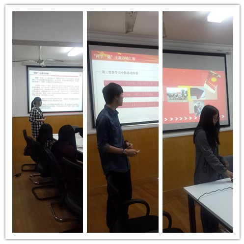 首先,三位“两学一做”组长汇报了各组的学习情况。张敏小组及彭骁然小组组织了交流会及积极分子的党章理论考试。在交流会上,张敏小组的各位成员针对“做合格党员”进行交流,她们在讨论过程中不断反思,不断提升自我。彭骁然小组则将心得写成通讯稿,分享了学习感悟。徐珂小组组织了线上线下的学习活动。线下,各位组员认真学习参考书目,讨论并汇报了学习心得。同时该小组运用易班,开展了线上交流活动。 接着是大四党员的经验分享,分享内容主要分为工作、考研、出国留学三方面。工作方面,有三位学姐分享了自己大学四年的感悟。陆赛楠同志针对银行来分享自己的面试经验。银行秋招一般在9-12月,大家需要关注各个银行的截止时间。银行的笔试题量大,可以提前练真题,熟悉题目。单面需要针对简历内容来准备面试问题,群面多为无领导小组,群面更注重发言的质而不是量。另外,面试前最好对该行的产品有所了解。朱冰燕同志认为实习过程要踏实。她说四大会计师事务所面试中需要关注各个企业的肉番。以德勤为例,德勤偏好有团队合作精神的员工,毕马威则更偏好有个人想法的人。在实习过程中,汤晓桐同志用一位正式员工的标准来要求自己。在遇到挑战时,她正视自己的不足,告诉自己要自信。同时她认识到英语对一份工作的重要性。在大学四年中,她有着自己的坚持,认真过好每一天。 考研方面,齐晓宇同志分享了她的考研经历。她认为大家需要有一个明确的规划,在明确自己选定的道路后要坚定地走下去,同时强调英语的重要性,并鼓励大家多参加学科竞赛。 出国留学方面,由阮静雯同志及王正道同志分享。阮静雯同志觉得认定了道路后要一往直前,而不是给自己很多个退路。王正道同志在大四时面对大学课程、语言考试及实习的三重考验时,仍不断努力向前。他提到实习中有责任心是至关重要的。