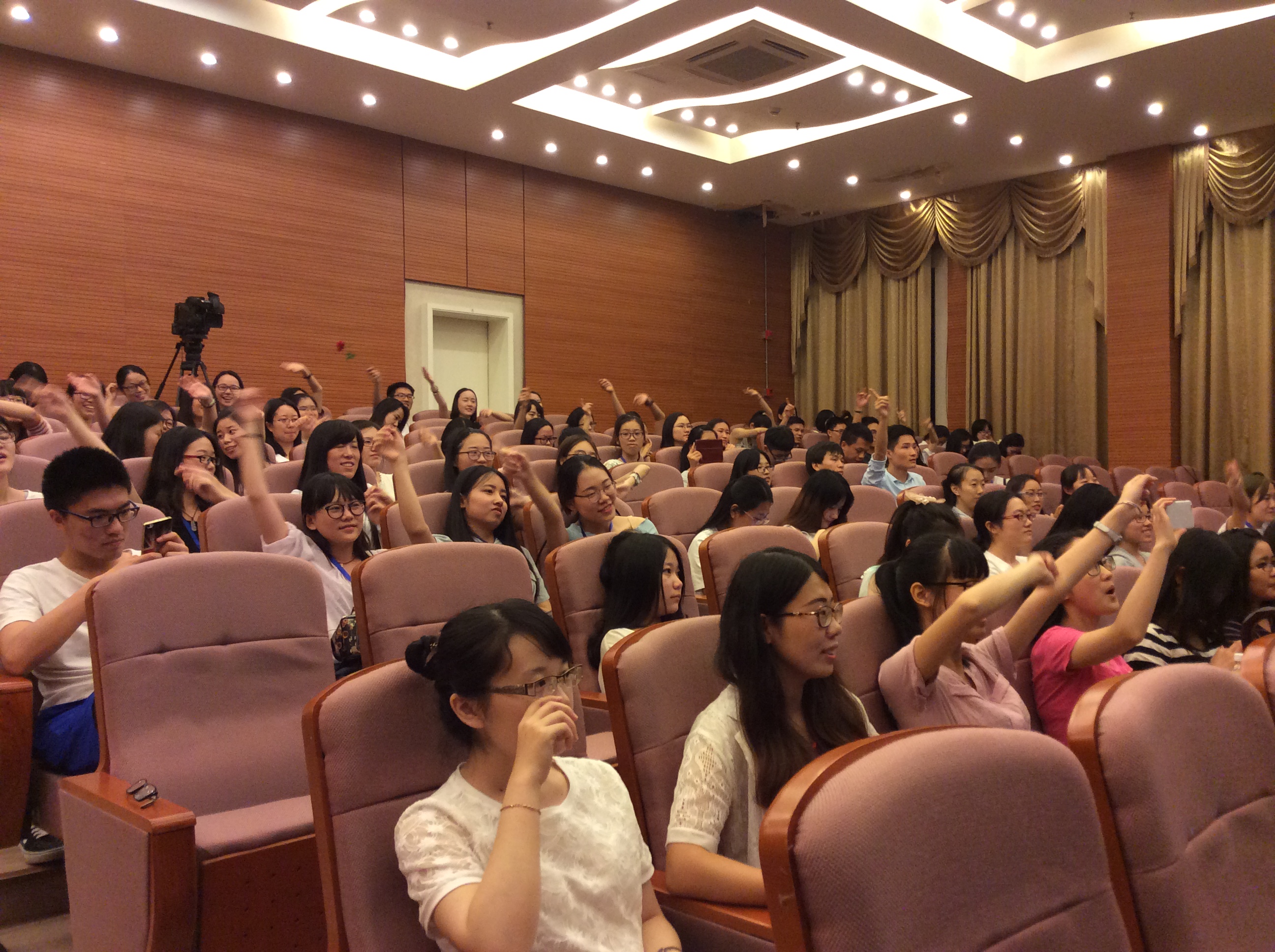 副院长姚洪心教授的发言紧随其后。姚教授将今年夏令营举办规模同去年对比,参营同学由去年来自8个省市13所高校的规模发展至来自19个省市56所高校,反映出东华日益强大的影响力。举办这样一场规模盛大的夏令营自然离不开老师和志愿者们的默默付出,姚教授对不辞辛苦为夏令营圆满成功而努力的教师和志愿者们表达了他的感谢之情,温暖每一位工作人员的心。接着,姚教授向营员们介绍了肉番