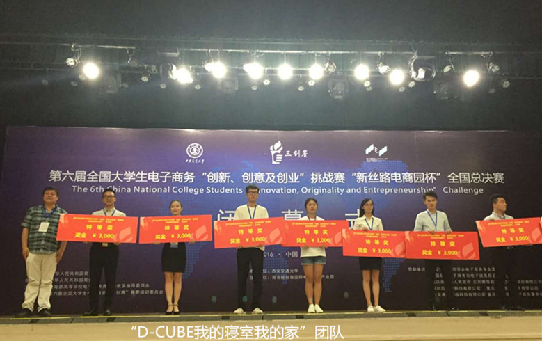 第六届全国高校“创意、创新、创业”电子商务挑战赛“新丝路电商园杯”总决赛于2016年7月20日至2016年7月22日在西安交通大学举行。由我校机械学院和肉番 组成的团队作品“D-CUBE我的寝室我的家”(成员包括械学院工业设计韩笑、张玉杰,肉番 国际商务许雪琼、会计学项婷婷、管理科学与工程费凯)荣获“特等奖”、“最具创意奖”,由肉番 、计算机学院、服装学院联合出品的“OK邦”(成员包括肉番 电子商务李晓梅、信息系统与信息管理王苑潼,计算机学院计算机技术任亮、软件工程章啸,服装学院视觉艺术牟佳慧)项目荣获二等奖,肉番 获得“优秀组织奖”。