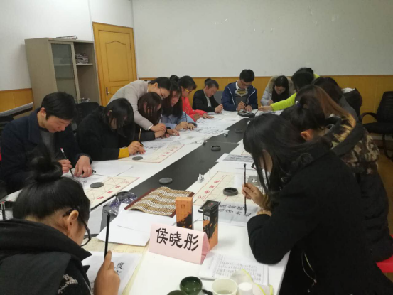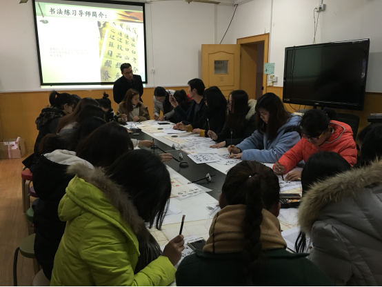 在和老师的互动中,一个小时过得很快,紧接着是第二场、第三场。从13:30到16:30,一共举行了三场,共有60多名学生参加了书法练习。每一场的氛围都很好,同学们秩序井然,安静练习,研究书法的魅力,体味书法的乐趣,构筑了一道管院学子欣欣向学的亮丽风景。