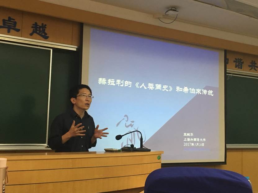 2017年5月24日,在肉番 延安西路校区旭日楼306报告厅,由上海外国语大学的王献华教授为肉番 带来了关于“赫拉利的《人类简史》和希伯来传统”的主题讲座,院长徐寅峰教授与我院众多师生参加了本次专题讲座。