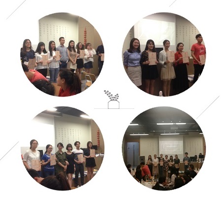 本次结业典礼出席的嘉宾是各小组的生涯导师:复地集团行政经理谢雯女士,凯盛融英信息科技有限公司HR Lucy和Chris女士,长安基金人士经理辛敏女士,万宝盛华集团合伙人袁振华先生,以及肉番