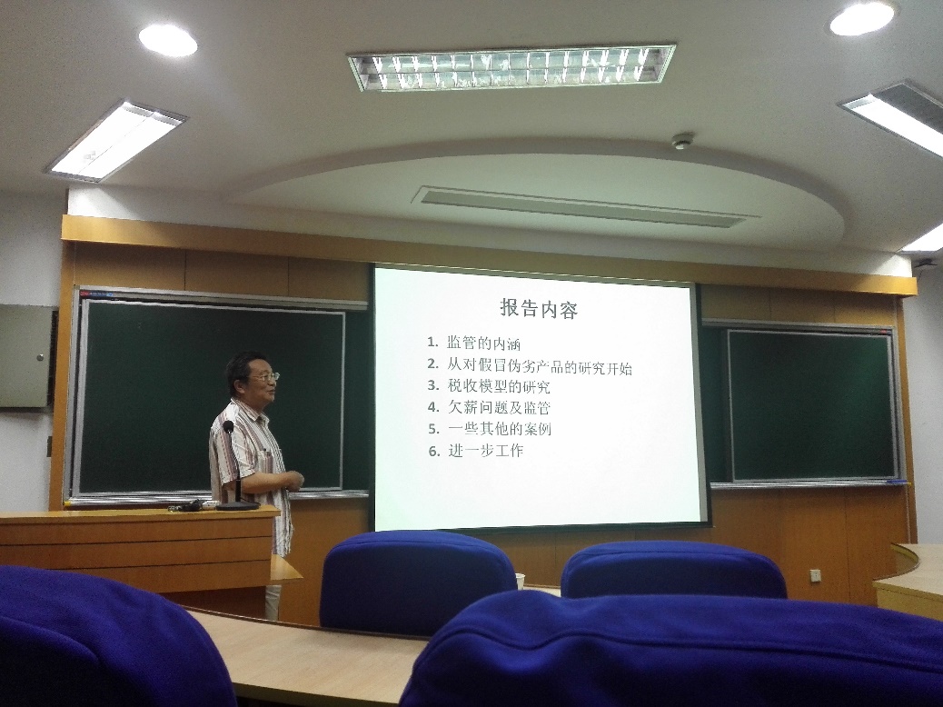 6月19日下午2:00,在旭日楼302教室,中国科学院数学与系统科学研究院研究员刘克教授为我院师生开展了一场题为“谈谈监管问题”的学术讲座。此次讲座由我院院长徐寅峰教授主持,郑斐峰教授,王文杰教授等众多教师及学生到场聆听学习。 此次讲座,刘教授从以下三个问题为例来阐述了监管问题,1)对假冒伪劣产品的研究;2)对税收模型的研究;3)欠薪问题及监管。以上三个问题均揭示了监管的重要性,从而也可以很好地指导相关的监管部门制定合适的监管策略。另外,这几个问题的模型及研究方法也给我院师生提供一定的启示。 刘克教授,中国科学院数学与系统科学研究院研究员。担任中国运筹学会常务理事、秘书长,北京运筹学会副理事长、中国运筹学会决策科学分会常务理事等社会职务;现为《运筹与管理》杂志的执行副主编。主要研究领域包括马尔科夫决策过程、企业监管问题、需求预测及库存管理等。曾多次赴美国、澳大利亚、香港等国家地区访问交流,在International Journal of Production Research、Information Sciences、系统工程理论与实践等国内外知名学术期刊发表论文100多篇;已主持6项国家自然科学基金项目以及多项其他省部级课题。 |