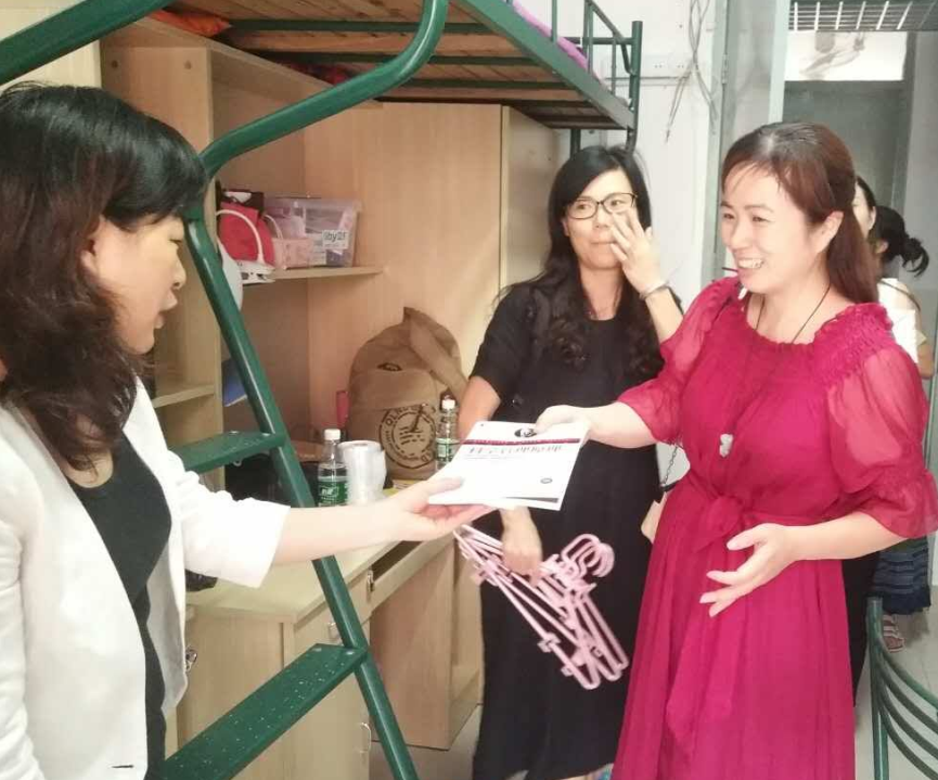 下午1点,老师们来到了女生入住的第八宿舍,继续上午的赠书活动,在与家长学生的沟通交流中,和谐喜悦为新生们的大学画卷添了最浓重的一笔色彩。