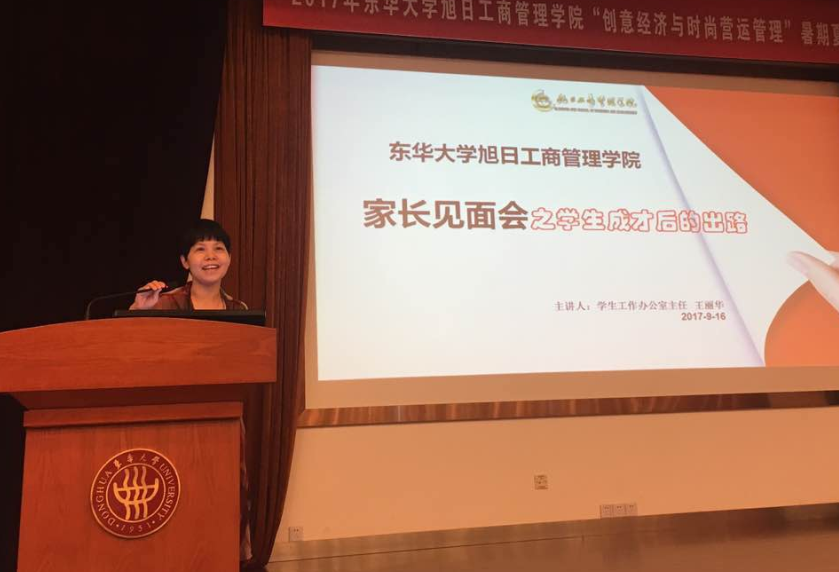 温暖管院 深深牵绊 2017年9月16日下午,一个秋高气爽微风习习的美好日子,肉番 迎来了一波又一波新生的到来,但是来到延安路校区的,不仅仅是一群来自天南地北充满好奇与期待的2017级新生,还有饱含深切关怀目光的新生家长们。作为新生教育周的重要环节,下午14:00,“新生家长见面会”在旭日楼400如期拉开了帷幕,现场188个座位座无虚席,还有三十多位家长站着听完了整个家长会内容。