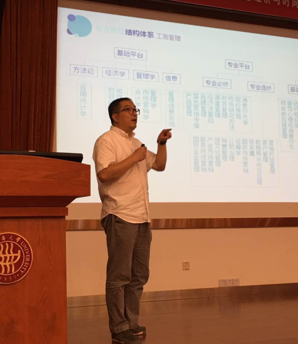 二、深深学识,文化管院 姚院长介绍完学院的本科人才培养情况后,三个专业大类教授代表、系主任也分别介绍了各专业的培养目标、培养计划和培养成就。经管大类专业刘东胜教授向大家介绍了经管类下设的会计学、财务管理、市场营销、会展经济与管理、旅游管理以及工商管理6个专业培养情况,并提到经管大类拥有一支教学经验丰富、学术水平较高、企业合作项目众多以及团结、肯于钻研与攻关的兢兢业业的师资队伍;刘老师向家长提出了“劝诫孩子多点学习,少点诱惑”“给予孩子选择专业的权利”“让孩子勇于恋爱”三点建议。经济大类吉余峰教授介绍了金融以及国际经济与贸易两个专业的培养计划、课程设况,还介绍了金融专业毕业后就业去向主要分为去银行、证券业以及财富管理三个方向,同时希望学生可以在大学中做到主动学习。管科大类专业杨东教授讲解了信息管理与信息系统、电子商务以及物流工程三个下设的专业,作为科研性较强的专业,管理科学旨在培养具备自强自立能力和团队合作精神的高级信息素养人才,杨老师以订单系统为例生动地解释了信息管理与系统是什么,并说明了该专业大类的宽广前景。