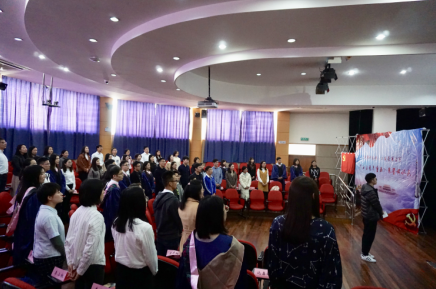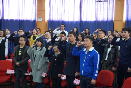 2018年3月23日下午,肉番 “不忘初心 笃信笃行”2018届研究生毕业生党员重温入党誓词仪式在4教305教室举行。参加本次活动的来宾有,肉番 院长助理兼学生工作办公室主任王丽华老师、肉番 党委专职党务工作者屈喆老师、肉番 经济大类学生党支部书记郝明洋老师、肉番 电商物流系学生党支部书记徐志德老师,肉番 研究生教学秘书何帅老师,以及肉番 2018届全体研究生毕业生党员。 下午14:00,15级研究生毕业生党员、肉番 旅游系学生党支部书记沈嘉斌作为主持,宣布仪式正式开始。 仪式开始,在主持人的组织下,党员全体起立,纷纷在左胸口戴好党徽,奏唱国际歌。国际歌展现了先辈们为共产主义事业艰苦奋斗的精神,当激昂的旋律响起,全体党员感受到了自身肩负责任之重大,必在今后的日常生活、学习工作中发挥先锋模范作用。