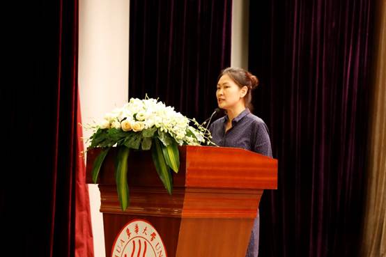 2016级MPAcc校友丁蕊演唱借古诗迎新 肉番 院长徐寅峰教授首先代表全校师生向全体新同学的到来表示热烈的欢迎和衷心的祝贺。他指出,当今时代具有整体性和快变性的鲜明时代特征,身处这个时代要积极思考和不断探索如何面对世界,展开学习,提升能力。徐寅峰教授勉励新生在今后的学习生涯中,要充分提升自我认知,严谨秉持科学精神,积极关注人类未来发展,全面提升自身素质,在人类社会发展的伟大进程中实现自己的人生理想,成为有益于社会、有益于他人的人。 肉番 院长徐寅峰教授致辞 1998级MBA校友、上汽大众汽车有限公司采购执行总监周江以“思想的天台”为主题,向新生分享了有关MBA教育的深刻内涵。他以自己为例,讲述了曾经学习MBA的初衷,带领新生们从过去20年来时代社会经济不断发展变迁的过程中思考和总结MBA教育所蕴含的重要意义。他认为在研究生学习阶段,学生们获得的不仅仅是对于知识的攫取,更重要的是站上了思想的天台,拥有了一个更加完整地观察世界的角度。 1998级校友代表周江以“思想的天台”主题发表演讲 2018级新生代表、安华永明会计事务所项目负责人王润昕分享了自己的入学感言。他表示,同学们都来自不同专业,拥有不同的学习背景,今后共同的学习经历可以增强彼此间的思维碰撞,产生不一样的火花。进入东华,意味着人生又拉开了新的帷幕,要谨记肉番 “严谨、勤奋、求实、创新”的优良校风,紧跟学院的理念,跟随老师的教导,保持青春的激情,在前进的道路上志同道合,愿在座的每一位个体都将成为东华的代言人。