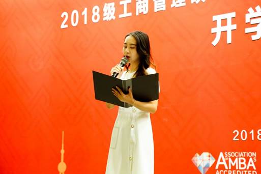 院长助理刘长奎副教授主持开学典礼 开学典礼仪式正式启动前,肉番 2016级MPAcc校友丁蕊以演唱“借古诗迎新”的新颖形式为迎新营造了一个别开生面的“开场白”,随后,开学典礼在庄严的国歌声中正式拉开了帷幕。