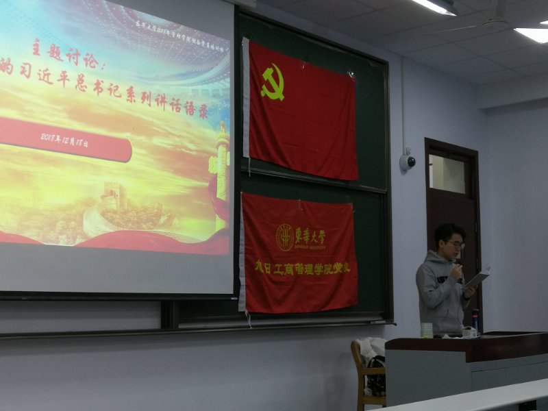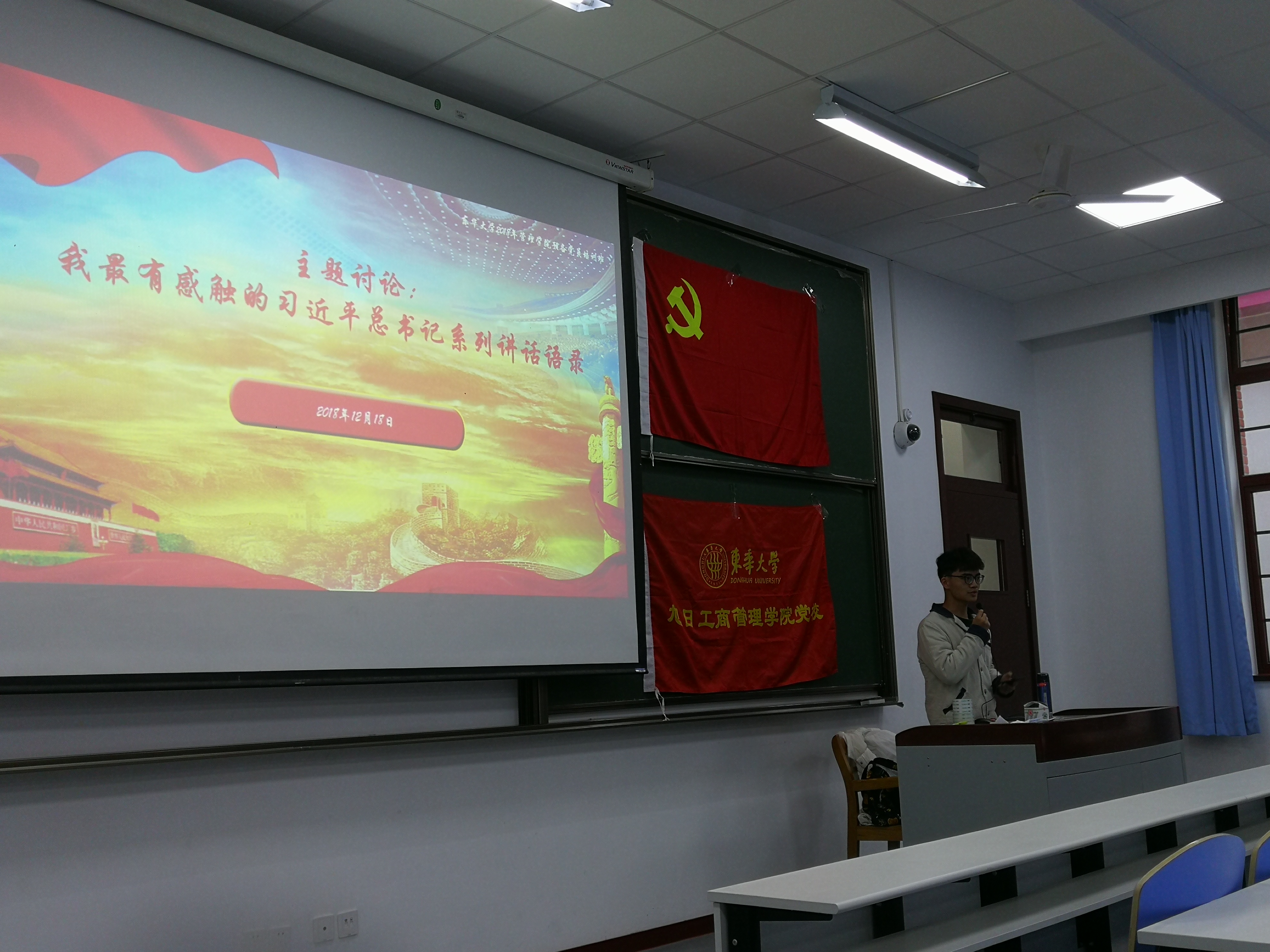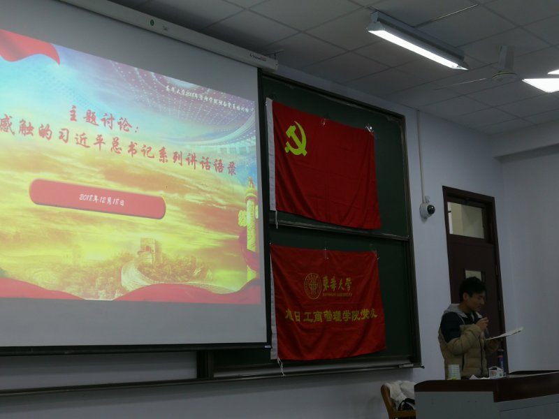 2018年12月18日,肉番 2018年预备党员培训班学员于第一教学楼119课室,参加主题为“我最有感触的习近平总书记系列讲话语录”的主题讨论,首先观看了央视的“平‘语’近人——习近平总书记用典”的节目,之后学员们针对节目的内容或者对自己最有感触的习总书记讲话语录进行讨论学习,加深学员们对习总书记讲话的理解。