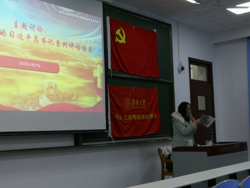 此次党课主要分为两个阶段,第一阶段是观看央视的节目《平“语”近人——习近平总书记用典》中的第三集——“国无德不兴”。这一集视频主要是通过习总书记的一系列讲话,讲解了三个问题,分别是“为什么立德”、“立什么德”以及“怎样立德”。习总书记的解答告诉大家,之所以要立德,是因为“国无德不兴,人无德不立”。同时要立这样的德:其一,明大德,即立志报效祖国;其二,守公德,即践行党的宗旨,全心全意为人民服务;其二,严私德,即严格约束自己的操守和行为。最后,习总书记还指出,要立德,就要从“格物致知,诚意正心,修身,齐家,治国,平天下”这几个方面做起。看完这个视频,学员们在敬佩习总书记丰厚的文化底蕴的同时,更是受益良多,记住了习总书记对党员、对当代青年的谆谆告诫。 第二阶段是各个小组学员针对节目的内容,或者对自己最有感触的习总书记讲话语录进行讨论,在各个小组热烈地讨论了20分钟之后,各小组派代表上台发言,总结与分享小组讨论的内容。