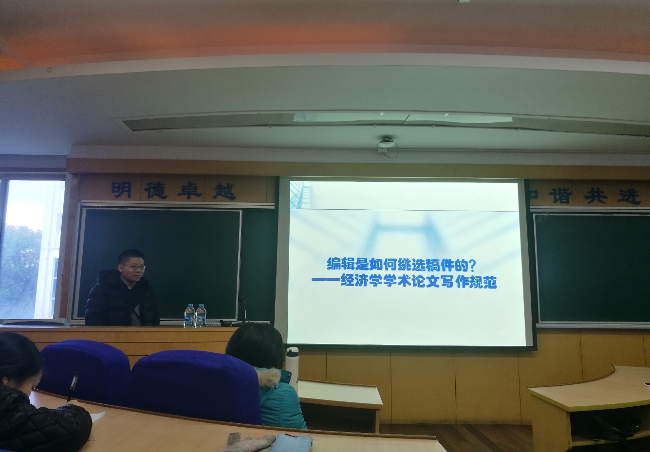 2018年12月20日(周四)下午2:30,《财经研究》编辑部邱国景博士为肉番 师生进行了一场题为“编辑是如何挑选稿件的?”的学术报告会。报告会在旭日楼306举行。
