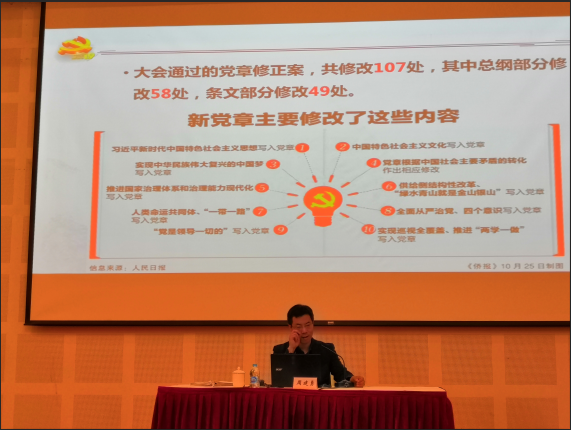2019年第一学期发展对象培训班主题课程在松江校区图文信息中心举办,党校此次邀请了上海市十九大宣讲团成员、上海市委党校周建勇教授为学员们带来以“做学习与践行党章的表率”为主题的课程。肉番