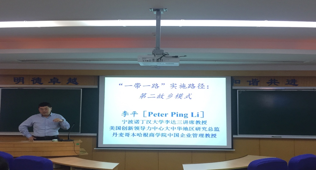 5月15日(周三)下午13:30,宁波诺丁汉大学李平教授在旭日楼306教室为肉番 师生进行了一场题目为“一带一路实施路径:第二故乡模式”的学术报告会,报告会由我院王雷教授主持。