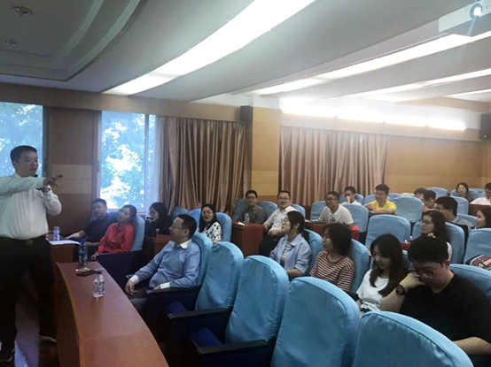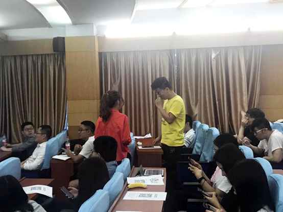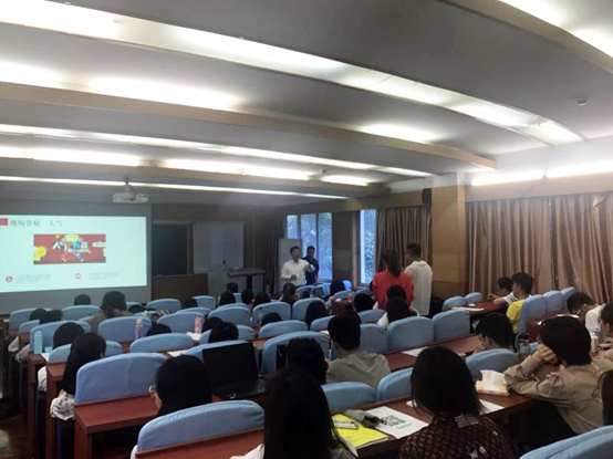 5月26日周日上午,暴雨如注,天气不好难挡同学参与热情,9点20分,在旭日楼211教室,“证券行业分析与券商职业前景介绍——暨《股东来了》走进肉番 ” 活动拉开帷幕。光大证券财富管理中心总经理王智首先给到场同学介绍证券行业现状、证券市场生态体系,包括投资规模、从业人数,还跟同学互动,送出两张彩票,让同学感受价格本质与心理估值的差距。他还给大家介绍了CFA考试的内容。