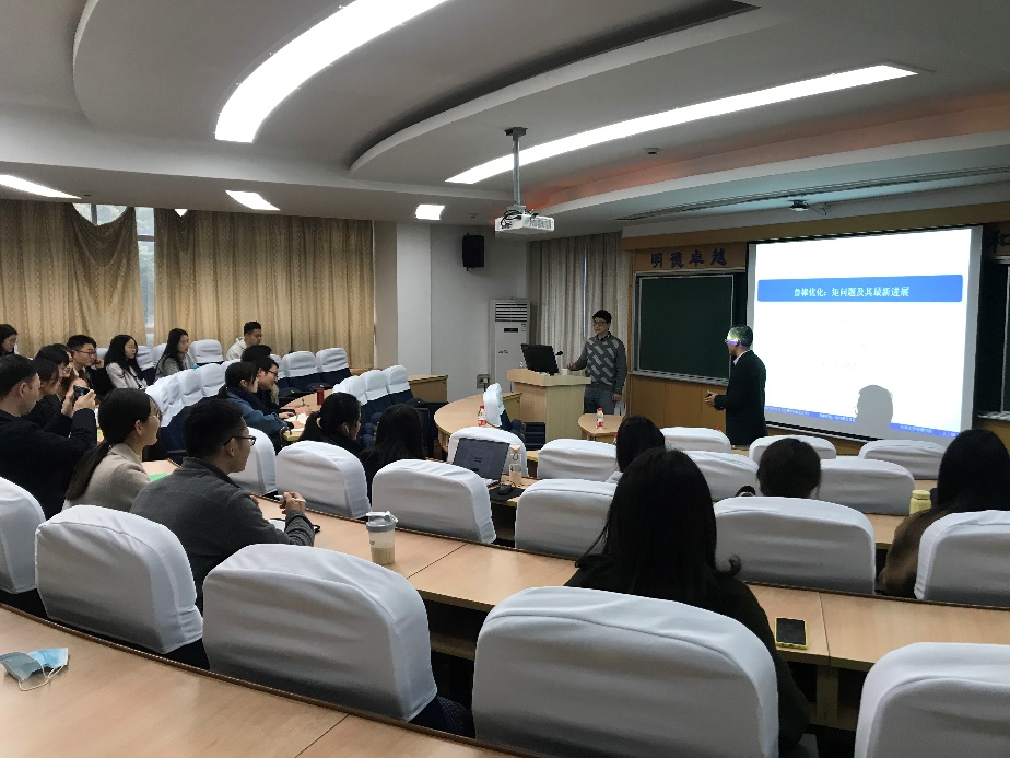 师生主讲了一场主题为“鲁棒优化:矩问题及其最新进展”的学术报告。报告会由郑斐峰副院长主持。
